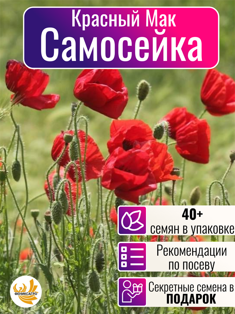 Мак Самосейка красный семена более 40 шт + Бонус + Рекомендации по проращиванию
