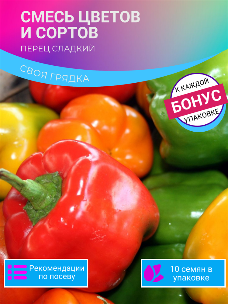 Перец Сладкий смесь Сортов семена 10 шт + Бонус + Рекомендации по посеву БЕСПЛАТНО!