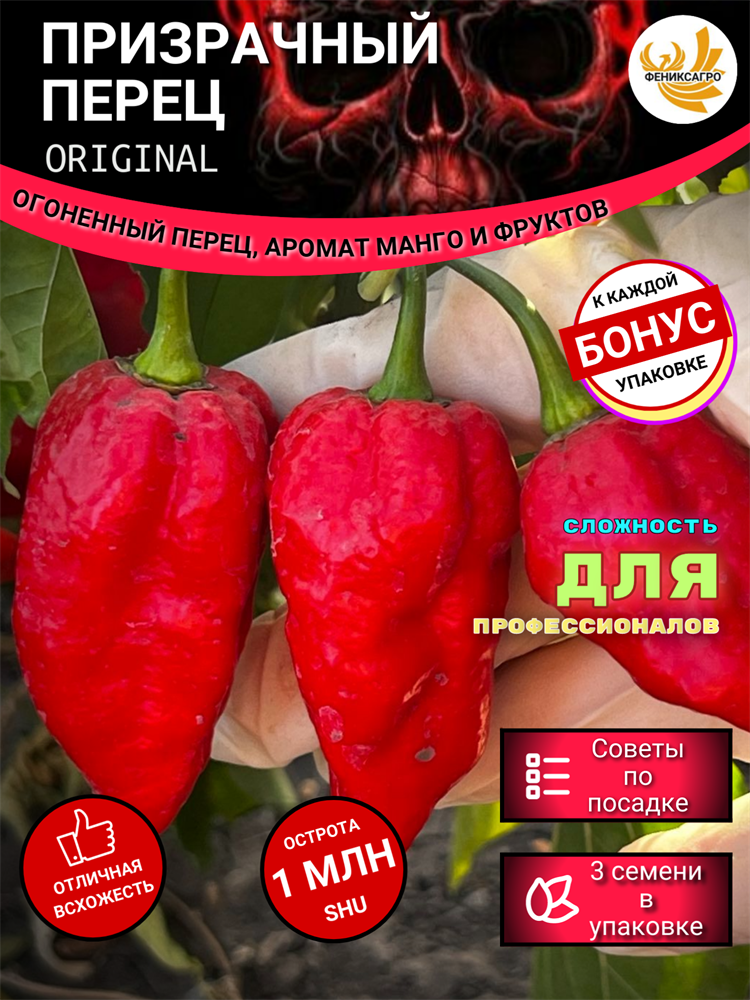 ПРИЗРАЧНЫЙ ПЕРЕЦ ORIGINAL Супер Чили семена 3 шт + Бонус + Рекомендации по посеву БЕСПЛАТНО!